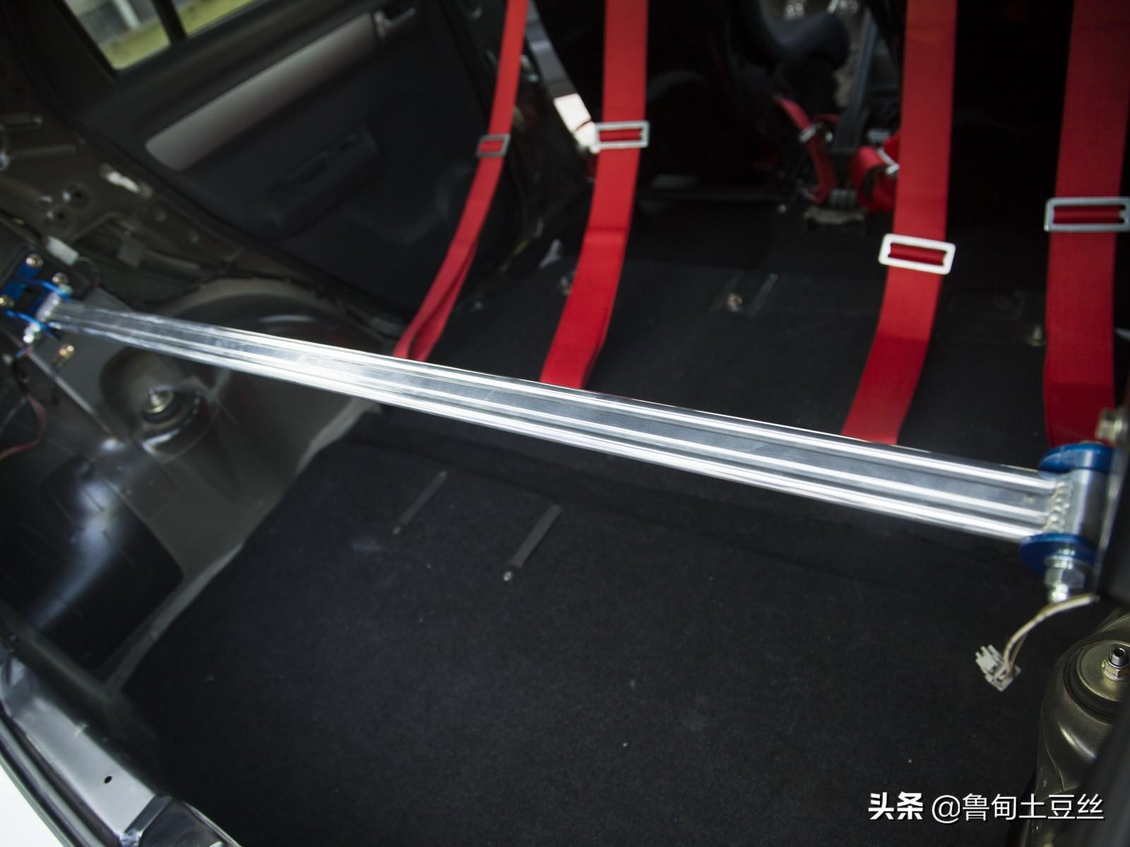 在赛车比赛中,车身强化是必不可少的,甚至可以考虑拆空后进行全车加焊来补强车身强度。不过这样做会耗费更多人力、物力,所以店家选择更为实惠的方案,就是CUSCO后顶吧、UR B柱拉杆来提升车身强度,保证车身在激烈比赛中的稳定性。