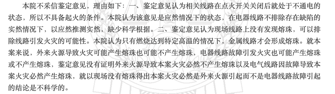 对于南京砝证检测科技有限公司出具《产品质量鉴定意见书》,二审法院不予采信,同时采信青岛市李沧区消防救援大队出具的《火灾事故简易调查认定书》,具体理由如下: