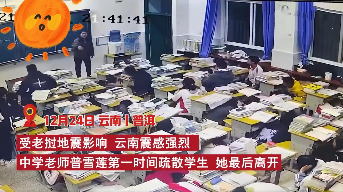 一所中学的学生当时正在上晚自习,守自习的普雪莲老师站在讲台上,是离前门逃离通道最近的人。