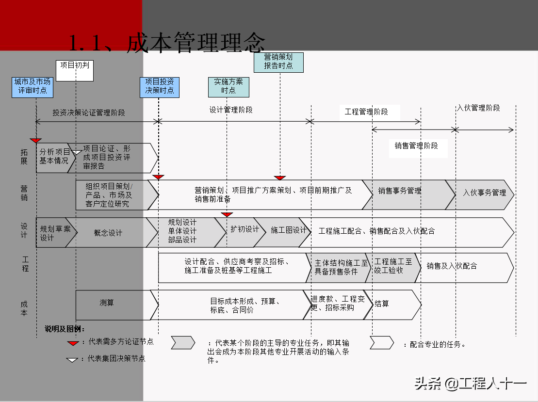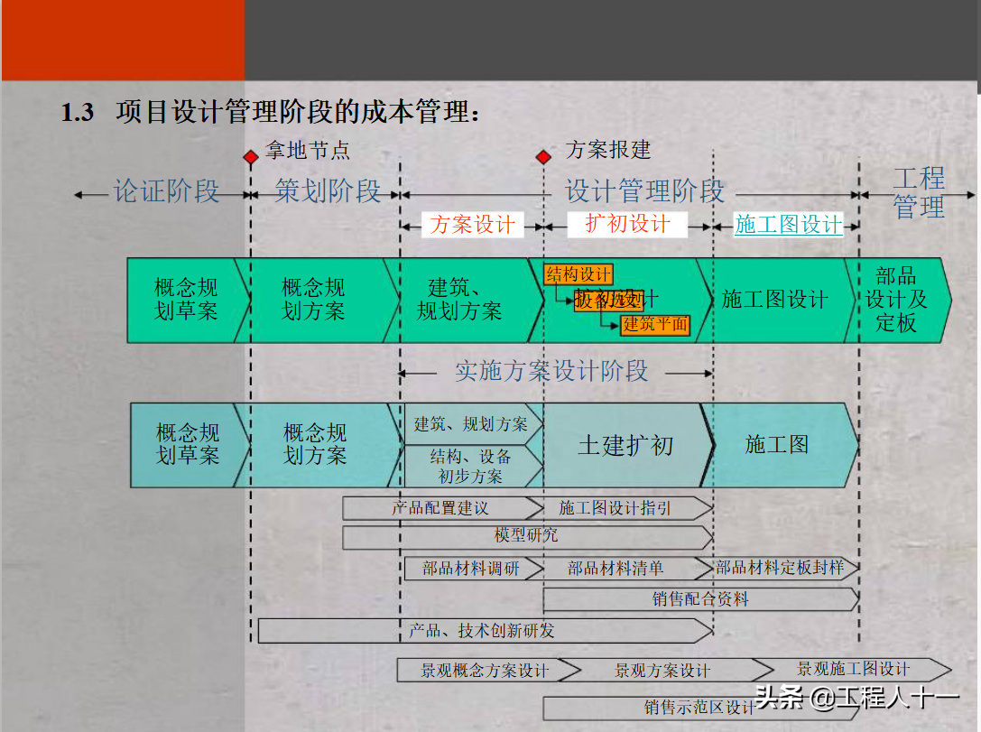 项目论证阶段的成本管理项目策划阶段的成本管理 项目设计管理阶段的成本管理:通过优化流程,提高设计管理阶段的成本管理水平。