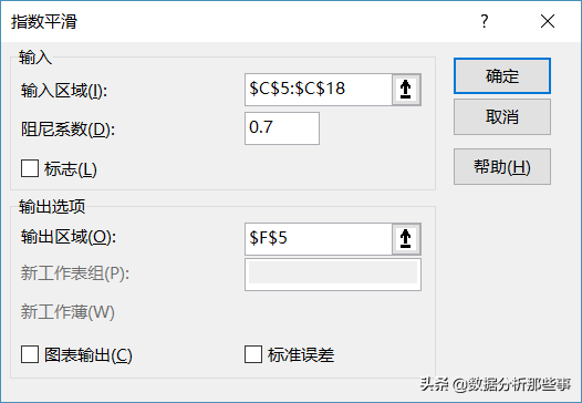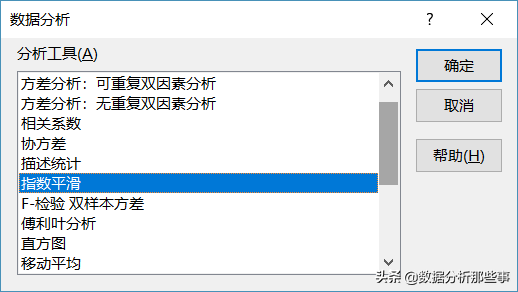 Excel也提供了指数平滑法分析工具,使用方法如下。
