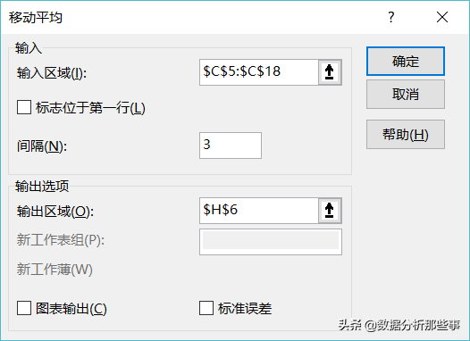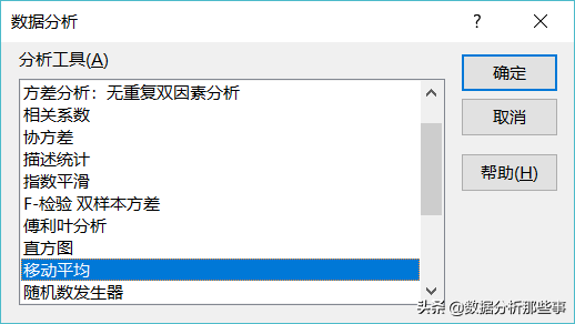 (1)在数据分析工具中选择“移动平均”:
