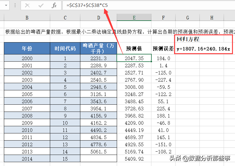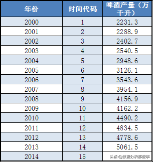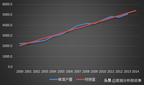 这里其实就是以年份作为自变量x,以啤酒产量作为y,进行一元线性回归即可。
