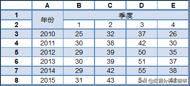 例如,有以下数据,某企业2010-2015年各季度的啤酒销量数据。
