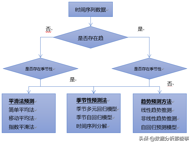 确定了时间序列的成分后,就需要选择适当的预测方法,选择的方法如下图所示。