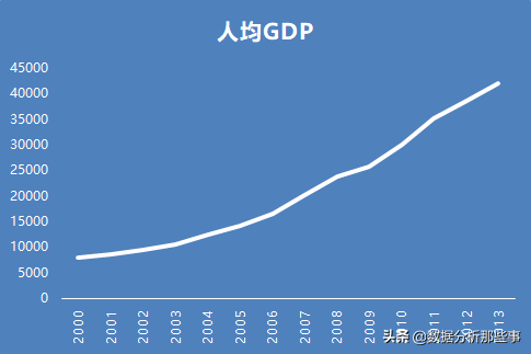 描述时间序列最直观的方式就是绘制折线图。在Excel中将上述人均GDP时间序列绘制成折线图如下。