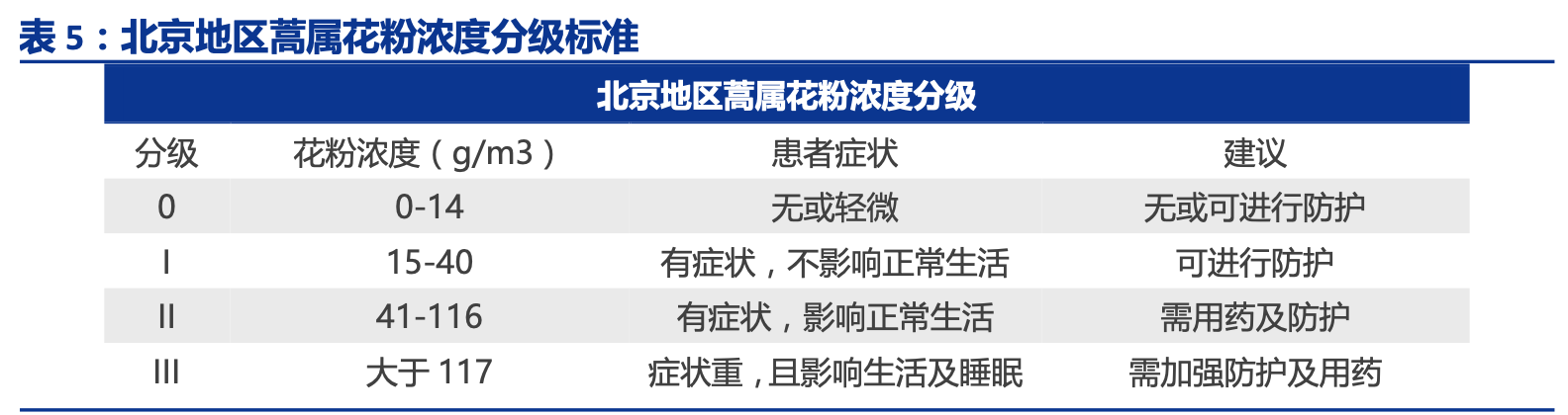 大气中的致敏花粉的种类繁多,不同国家、不同地区、不同的海拔高度和不同季节可 有不同的致敏花粉,如豚草是欧洲和北美最主要的过敏原,蒿属花粉中的黄花蒿则是我国 危害最强、分布广的夏秋季过敏原。过敏患者的数量和症状严重程度与当地花粉计数有很 大的相关性,越是干燥、雨水少的地方,空气中漂浮的花粉数就越多。在北方地区,蒿属 花粉的平均阳性率为 28.6%,在内蒙地区,蒿草过敏的阳性率可高达 80%。在南方地区由 于雨水较多,花粉不易漂浮在空气中,因此南方花粉过敏的发病率较低。