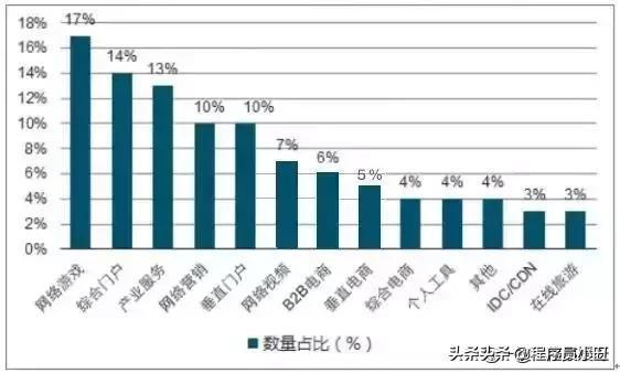 我们可以根据下图“2017中国互联网企业100强业务类型”看出,其中大数据、游戏、人工智能三大行业呈现高速增长趋势。