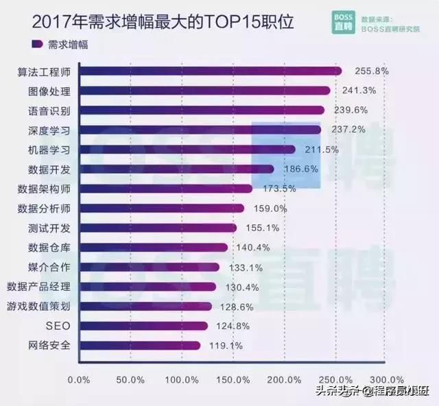 数据显示,在2017年雇主发布的职位说明中,Python技能需求增速约174%,居于首位。