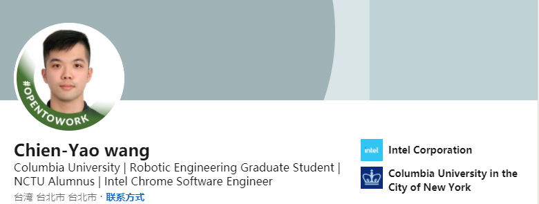 值得一提的是,这篇论文的一作Chien-Yao wang(王建尧)是哥大的一名机器工程方向的研究生,现在是Intel的一名Chrome软件工程师。