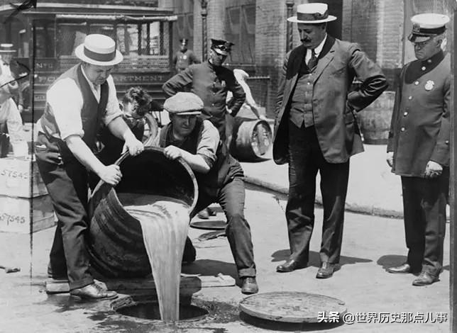 禁酒令初期,啤酒生产商不得不把库存的酒水倒入下水道。