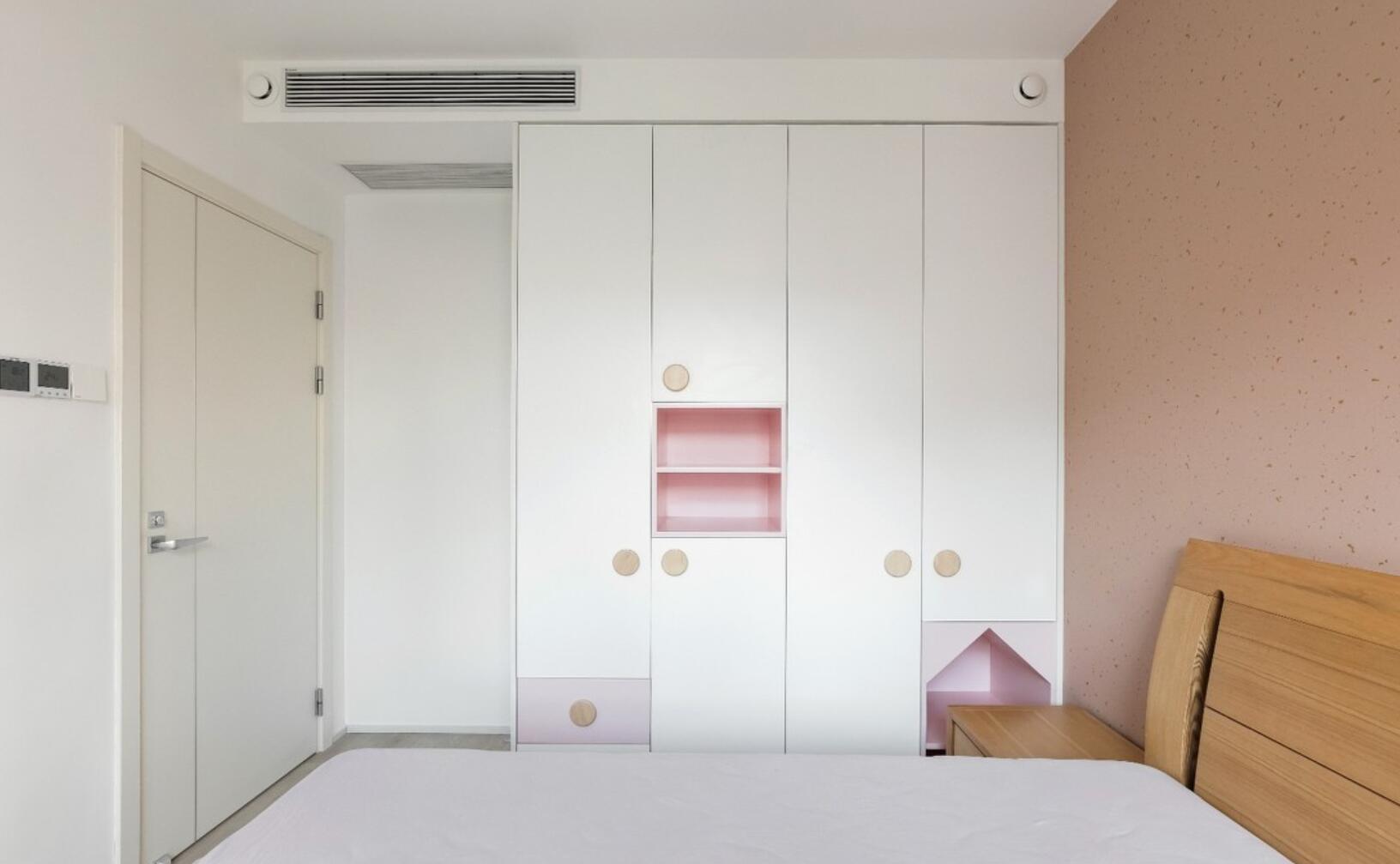儿童房最大的特点,就是侧面的衣柜设计了,立马就在这个简约的空间中,增添了一抹趣味性。
