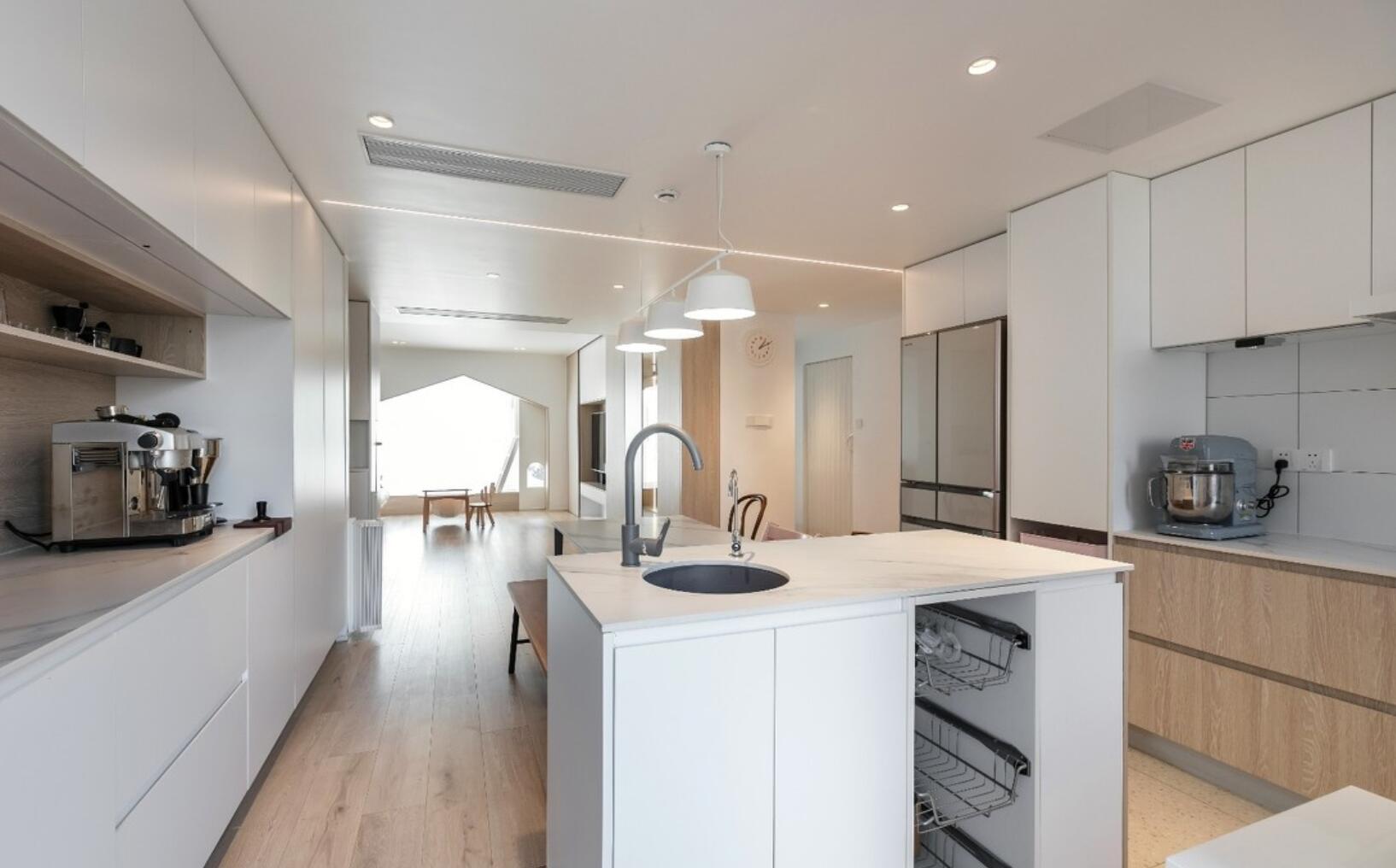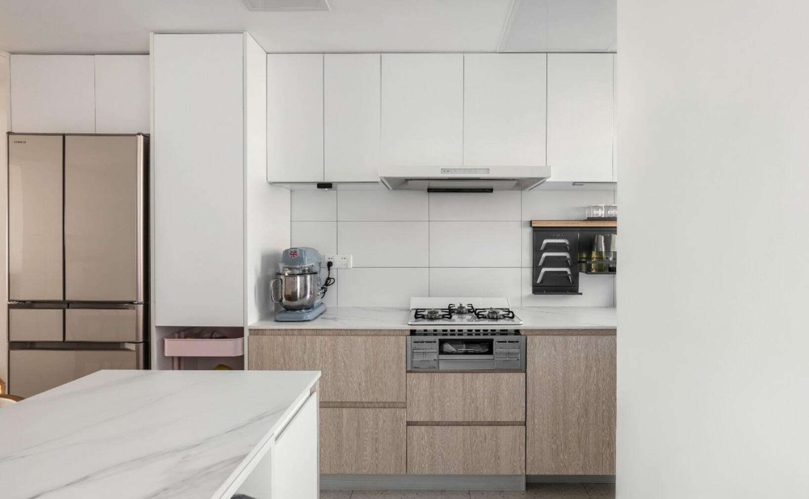 考虑到原厨房面积比较有限,直接采用开放式设计,除了让空间更加通透、宽敞了之外,也让空间的功能更加丰富了。