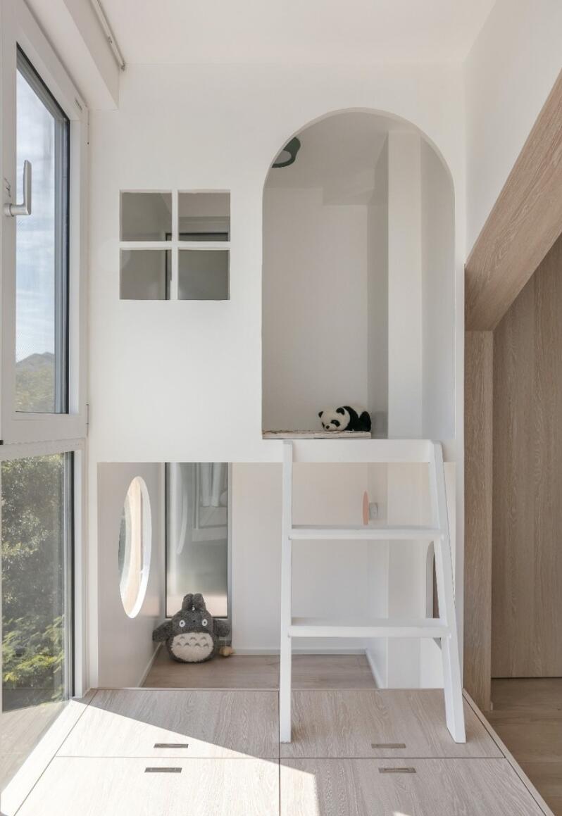 阳台一侧的树屋设计,算是给孩子的最大惊喜了。尤其是在后疫情时代,更是弥补了不能随时带孩子出去玩的遗憾。