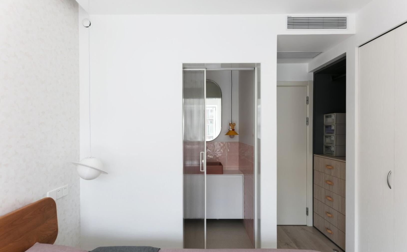 卫生间算是全屋最大的一个设计重点,在空间面积有限的情况下,为满足屋主的四分离需求,空间功能也做了重新定义。比如主卧里的衣帽间,就仅保留了马桶、台盆的功能。