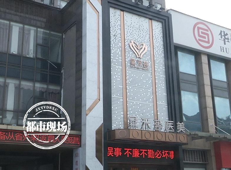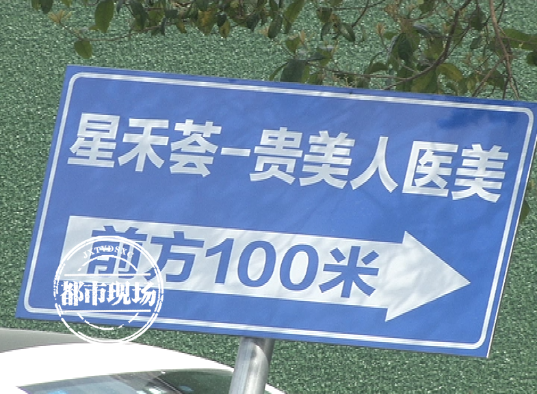 袁女士分别找到两家机构要求继续修复治疗,但是都遭到了拒绝。袁女士说,一直跟她对接的“星禾荟医美”的工作人员目前在贵美人工作,之后的多次协商也都是在“贵美人”进行,于是她带着记者来到了这家位于南昌市云锦路的整形机构。在路口,记者看到,路牌打着的标语是“星禾荟—贵美人医美”。