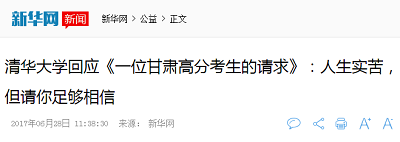 近日,一则甘肃残疾高分考生魏祥“带母上清华”的消息引发舆论关注,身患先天性脊柱裂、椎管内囊肿,双下肢运动功能丧失、大小便失禁的魏祥,在被清华录取后,向学校递交了一份材料,请求清华大学提供一间房子,让自己和母亲居住,方便完成学业。后流传至网上,清华随即也回复表示,将为魏祥提供一切尽可能的资助。