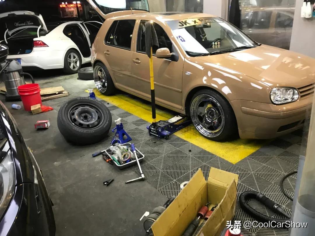 改车,优先改避震,这辆MK4改了一套BCBR的绞牙避震。改完避震后,虫女就在思考车身颜色。可是大部分MK4都是银色、黑色,然而虫女想要的是独一无二的车身颜色,随后她从自己喜爱的奶茶获得了灵感,决定喷一个奶茶色。既保留了复古车的味道,整体效果也非常亮眼。