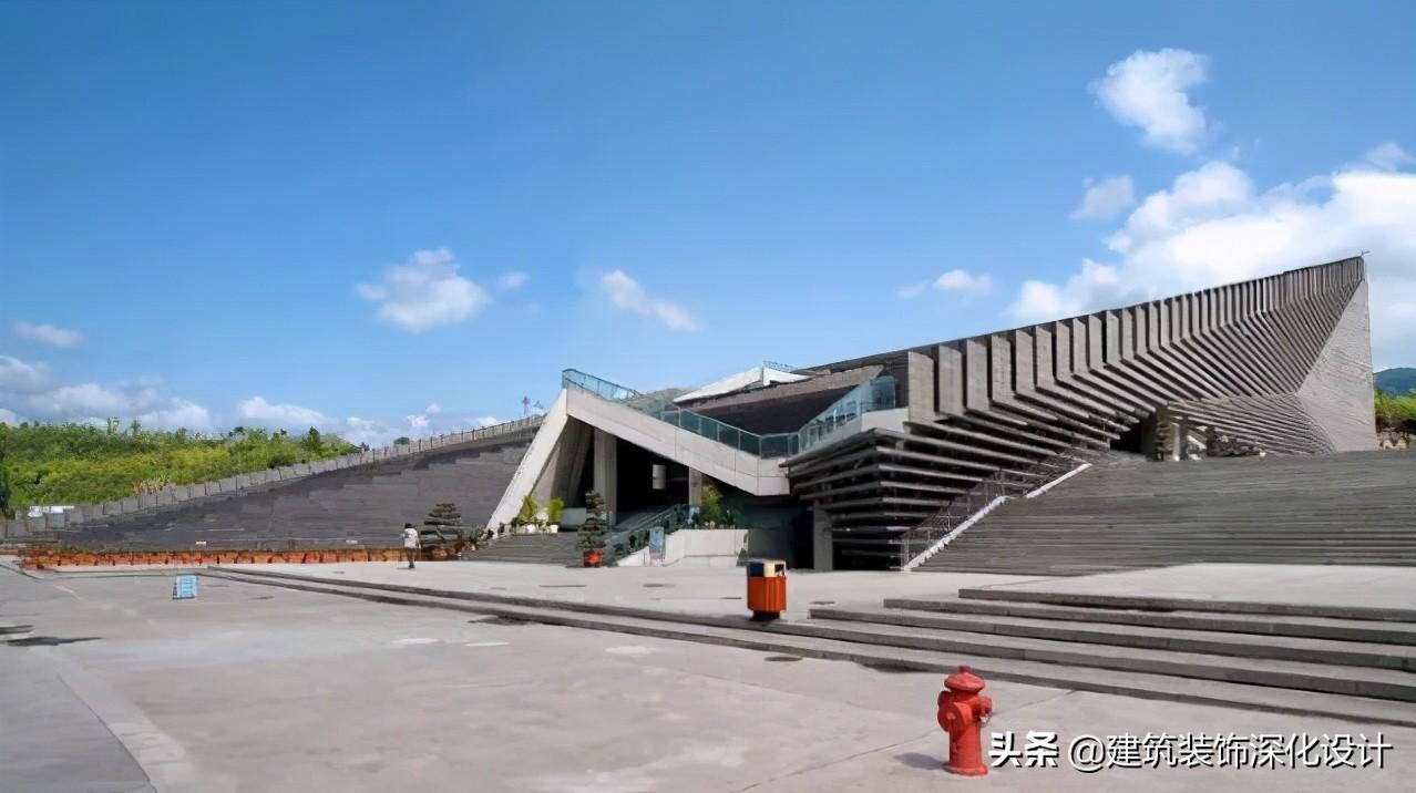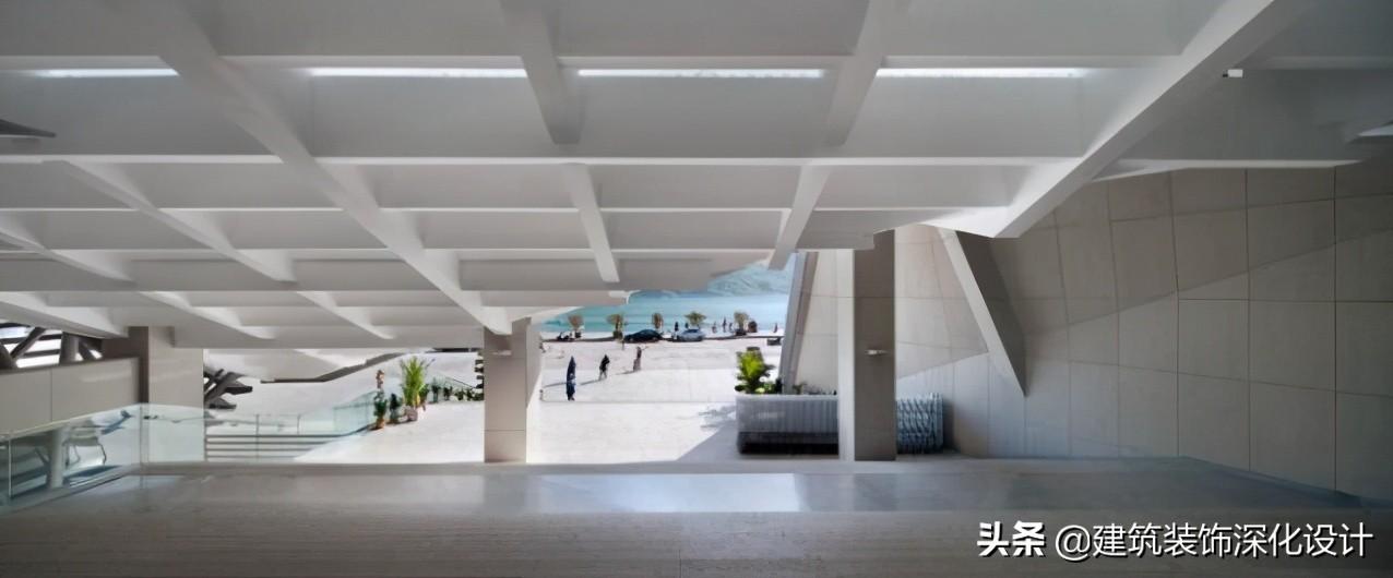 建筑高24米,共5层。内设1200座的剧场,以及规划展览馆、博物馆、图书馆、文化馆和青少年活动中心。与长江堤坝相呼应的姿态,在其宏大尺度的自然环境和建筑之间建立了一个适宜的关系。在充分尊重环境的同时,也在自然的水体和半岛之间建构了具有时代感和当代性的城市公共空间。