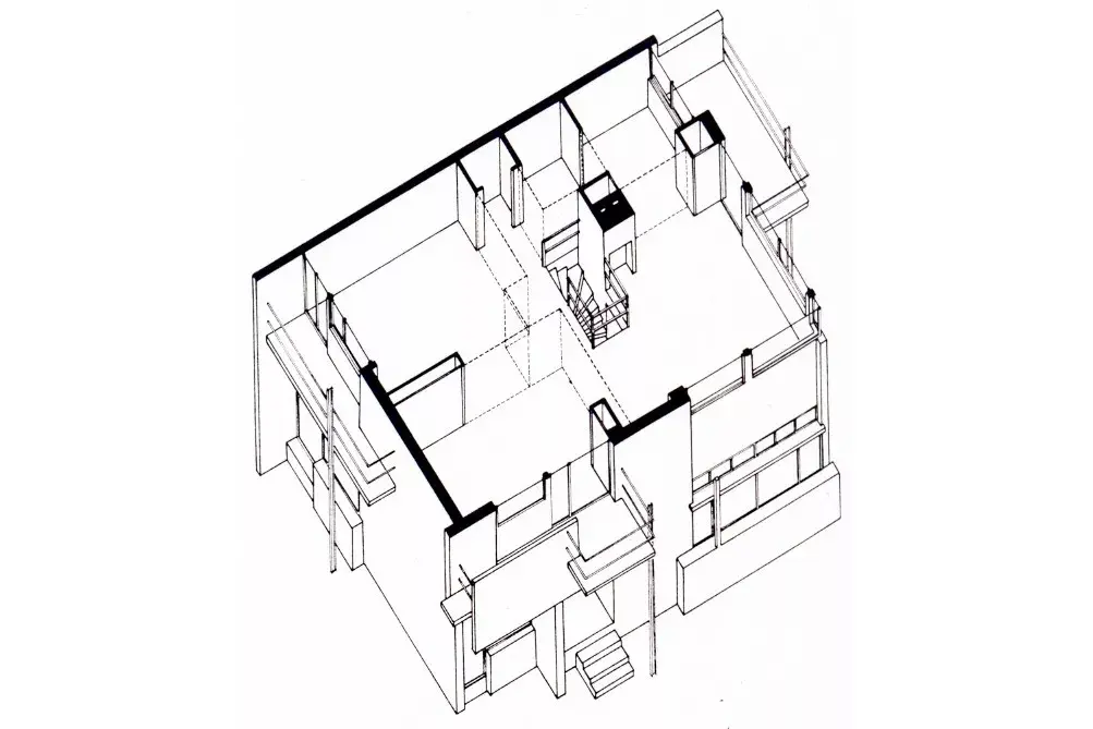 风格派旗手之一的杜伊斯堡认为,建筑应该忠实地表达它们所限定的空间,而不是一件披在许多房间外面的花哨外套,这样的理念在施罗德住宅中被清晰地体现出来。