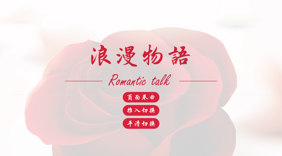 因为,切换效果太多,我就挑3个最经常用也是最好玩的三个,做了一份浪漫物语PPT给大家讲一下。