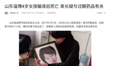山东一名4岁女孩辰辰,因发烧37.5度在私人诊所输液后死亡。