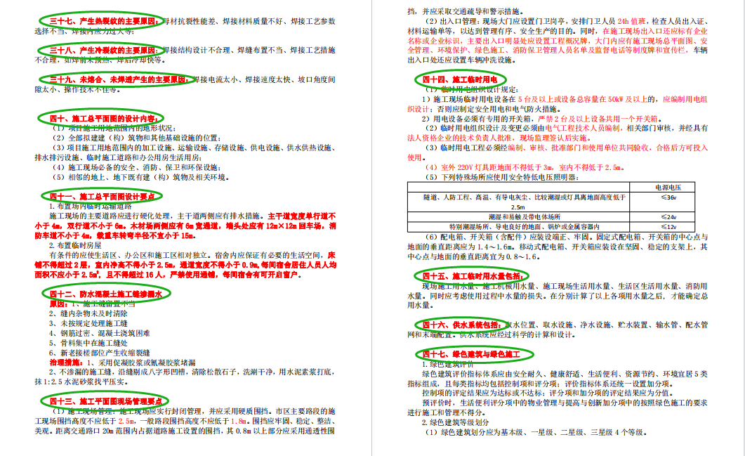 这100问汇总了一建建筑所有的高频考点,都是根据往年真题以及考试大纲提炼出来的,命中率高达90%,而且分别用了不同的颜色进行标注,重点一目了然。