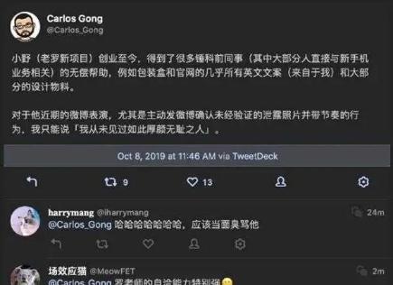而老罗的前员工认为这个举动间接确认了该网传照片的真实性,称“小野(老罗新项目)创业至今,得到了很多锤科前同事的无偿帮助,例如包装盒和官网的几乎所有英文文案和大部分的设计物料。对于他近期的微博表演,尤其是主动发微博确认未经验证的泄露照片并带节奏的行为,我只能说‘我从未见过如此厚颜无耻之人’。”