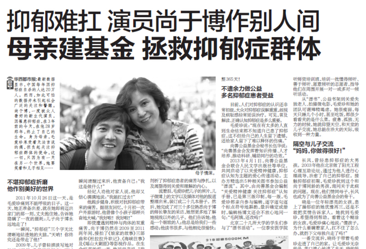 就这样,工作的压力让病情愈发严重,直到2011年10月25日,尚于博再也无法承受这一切,选择了离开人世。