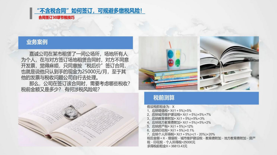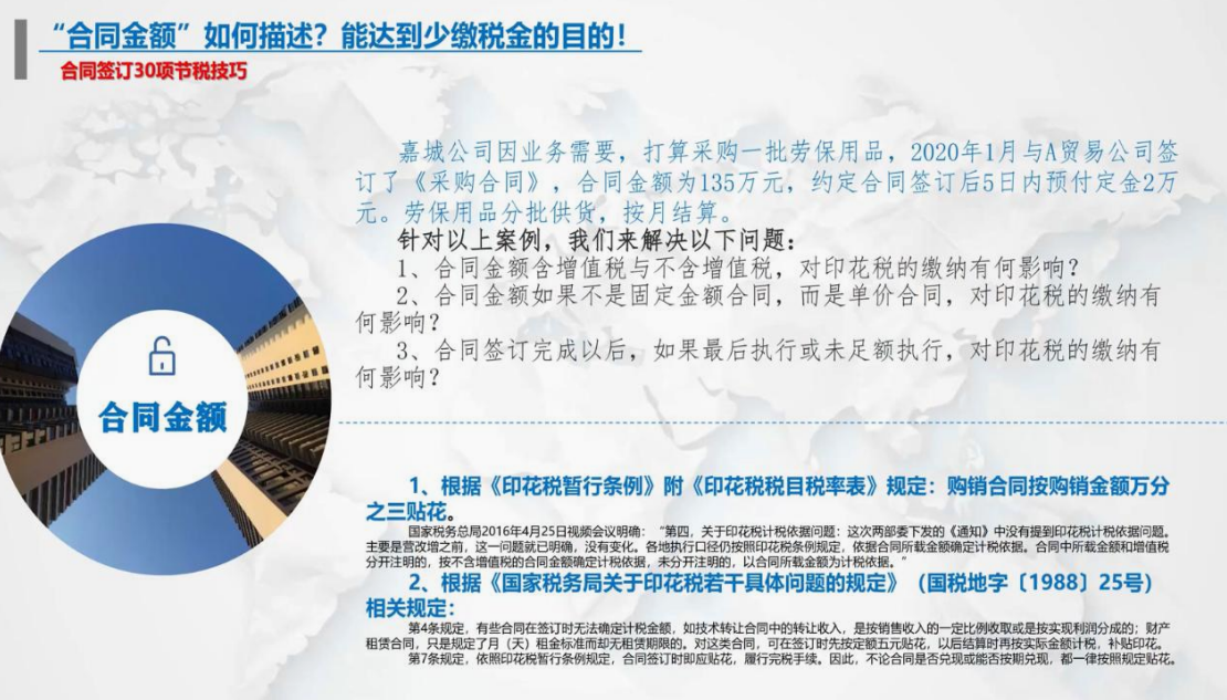 今天有幸在这里跟各位财务人员探讨一下:合同控税和合同节税案例,也希望能够为大家做纳税筹划工作提供些不一样的思路!