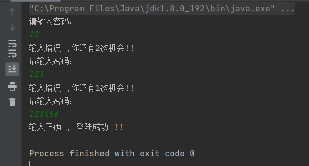 最多能输入三次密码,密码正确,提示“登录成功”,密码错误可以重新输入.