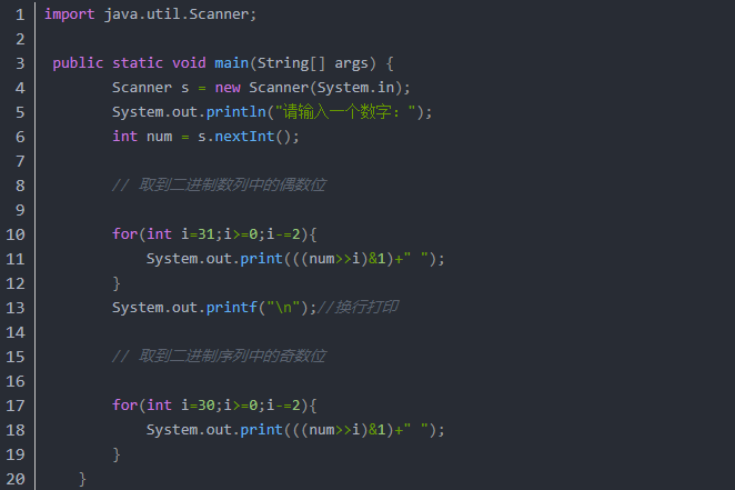 题目内容:获取一个数二进制序列中所有的偶数位和奇数位, 分别输出二进制序列。