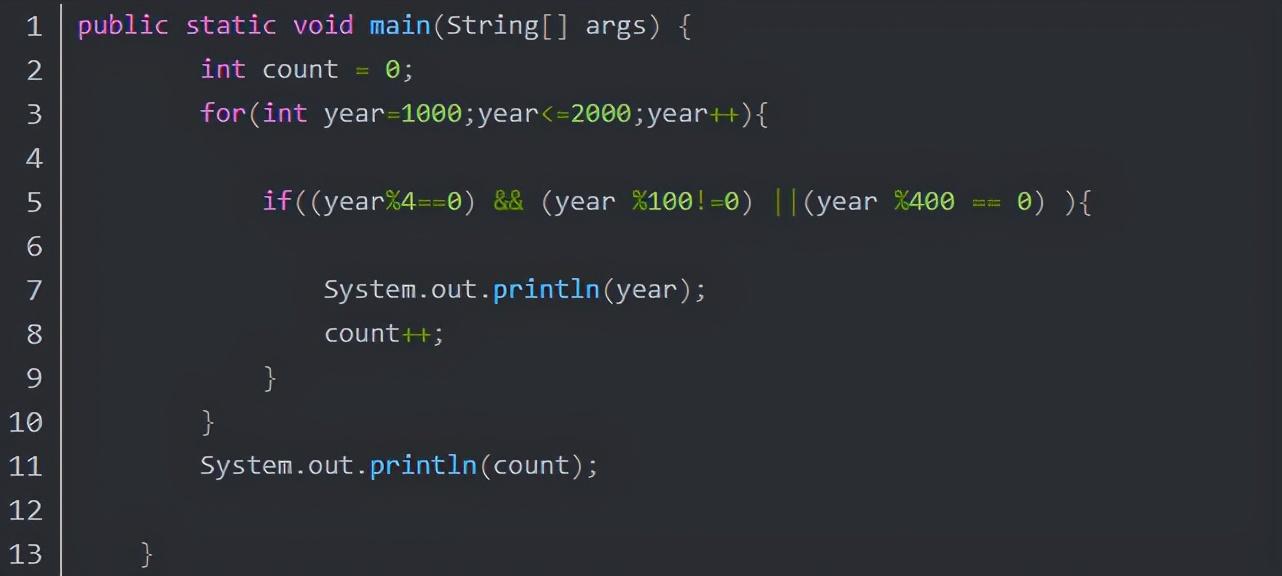 题目内容:输出 1000 - 2000 之间所有的闰年