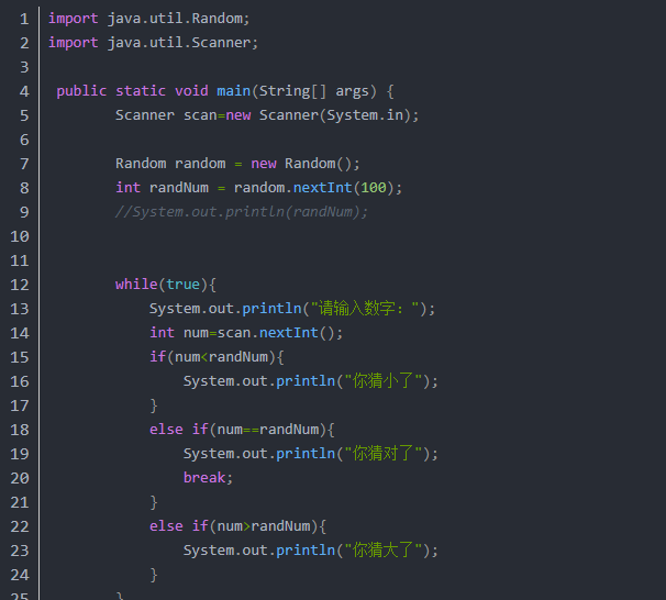 题目内容:我们实现简单的猜数字游戏,由电脑随机生成100以内的数字,我们进行猜测,直到猜对为止,程序退出。