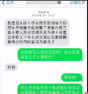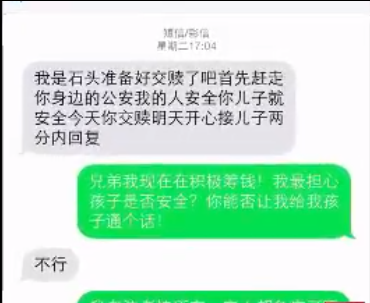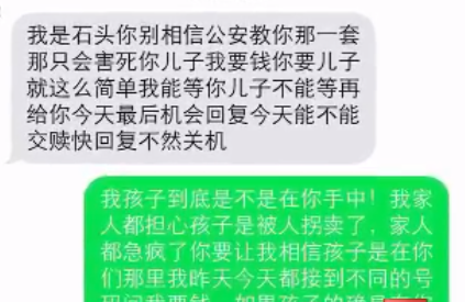 看到短信,受害人父母惊恐不已,害怕孩子被撕票。