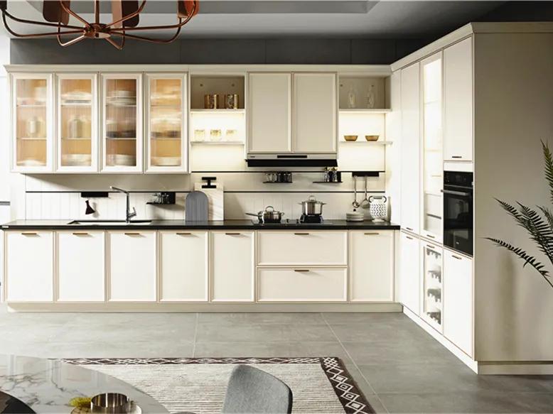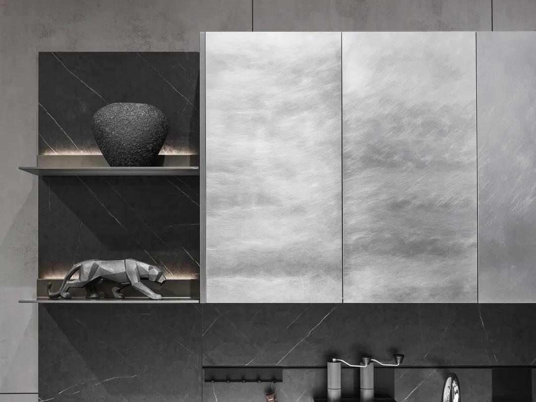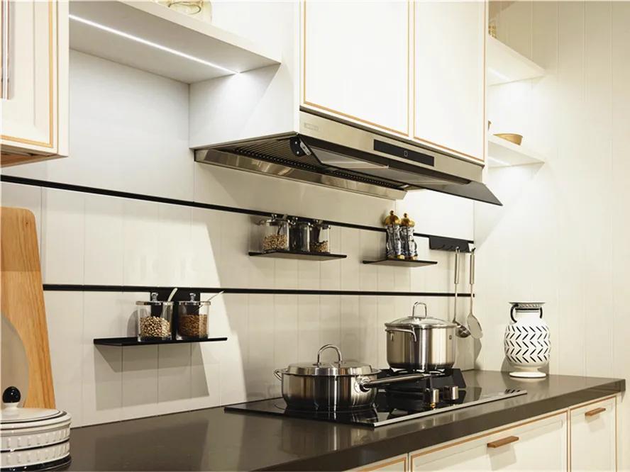 简约的外表下,通过金属封边的点缀,橱柜充满艺术观感的的边框修饰,让外形更加美观。