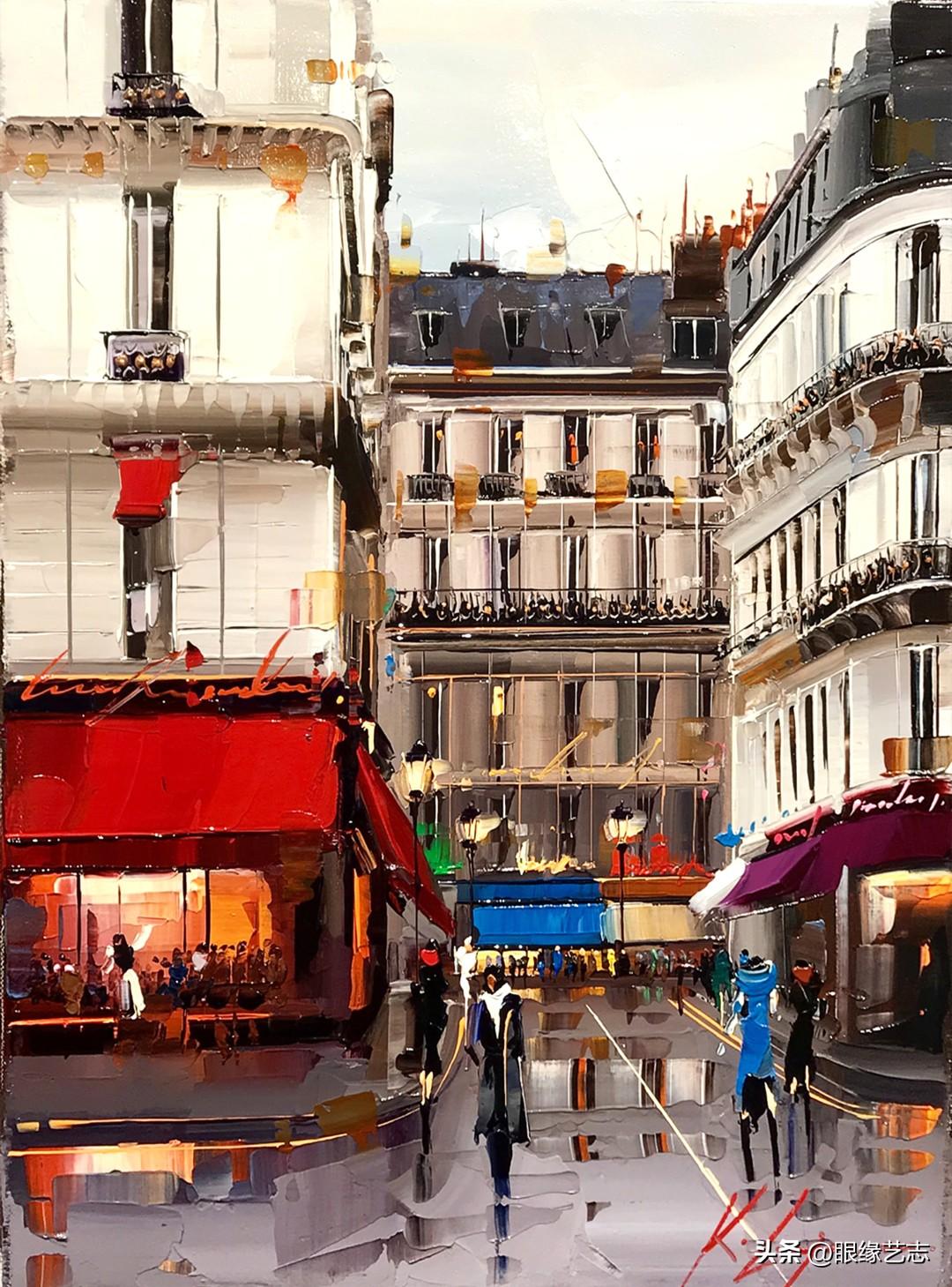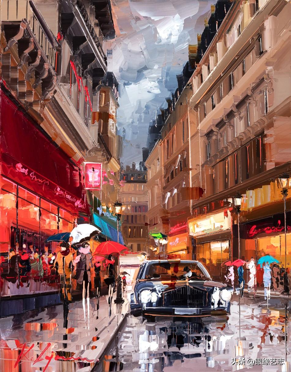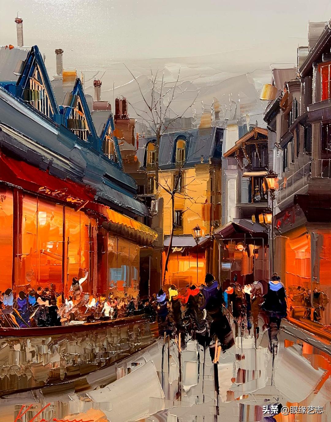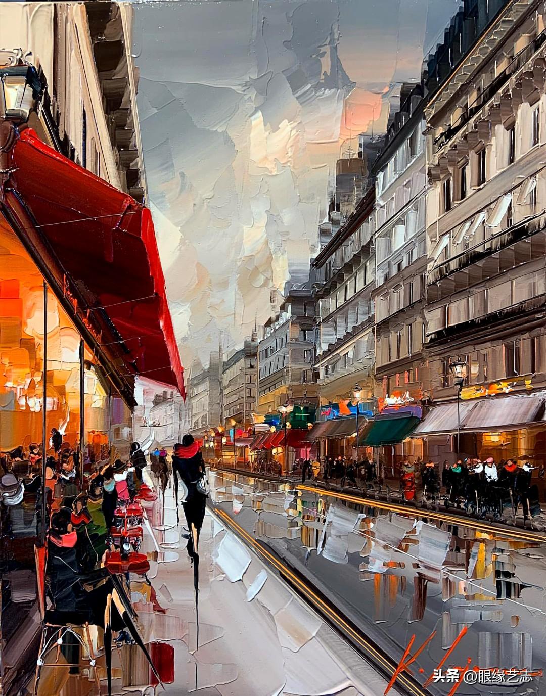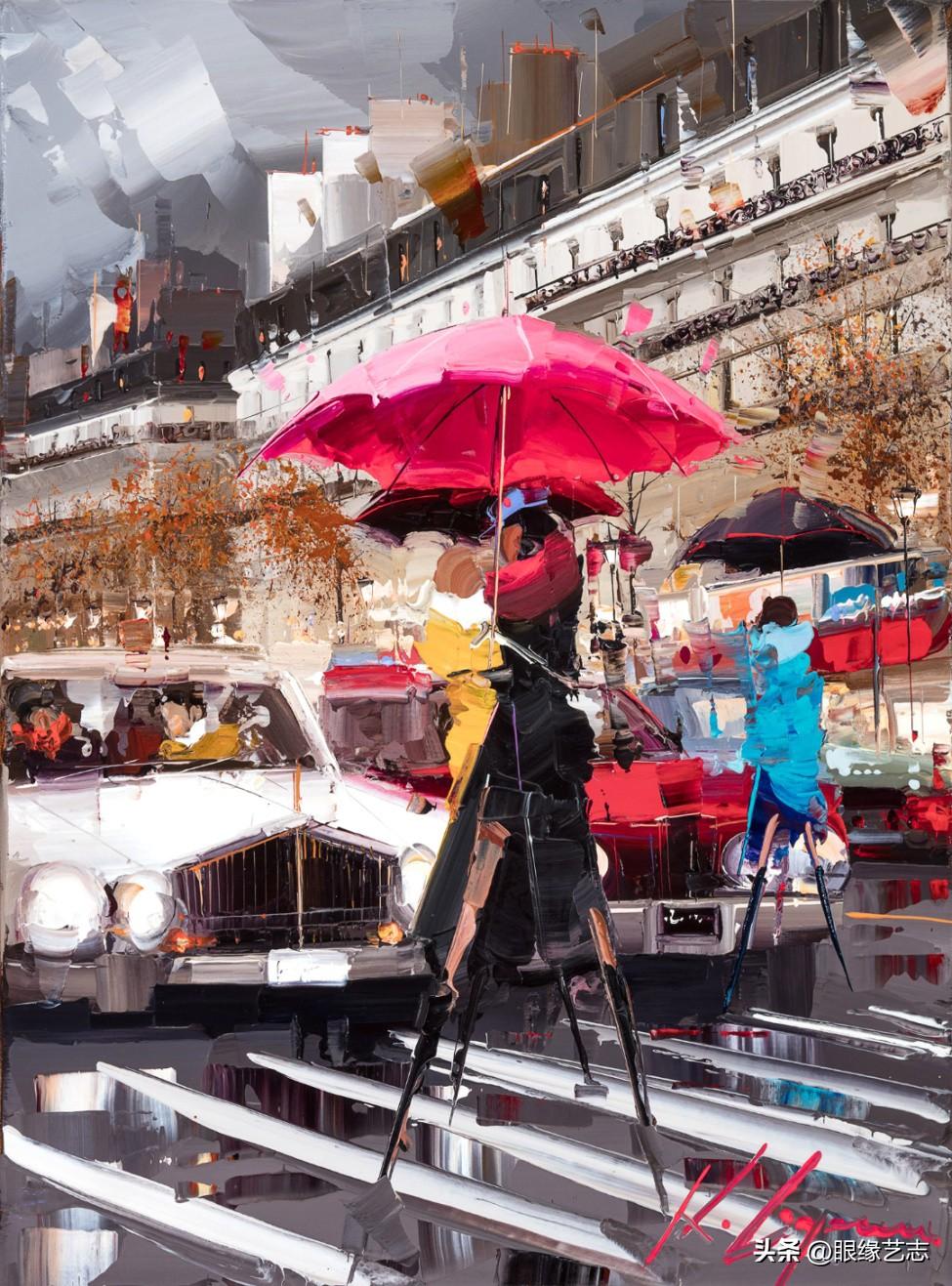 在蒙特利尔弥漫着淡蓝色烟雾的工作室中,作为当下全球最多产和最杰出的调色刀画家之一,加拿大艺术家卡尔·加朱姆习惯于吐着烟圈,在他的城市景观中画下一双双纤细的长腿,并为她们穿上一款款时尚的衣裙。正如法国作家维克多·雨果所说的那样,烟草正在将他的思想转化为梦想。