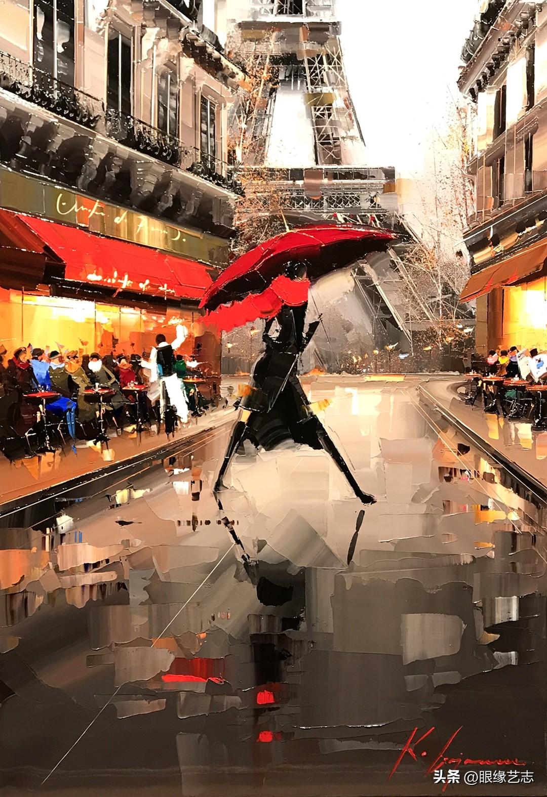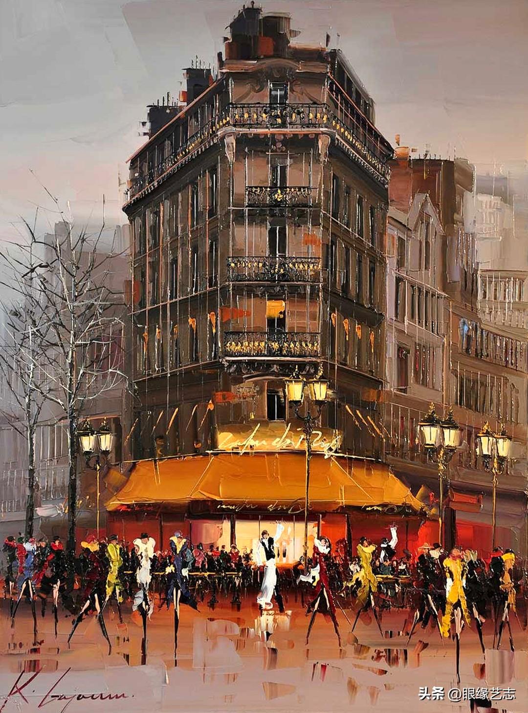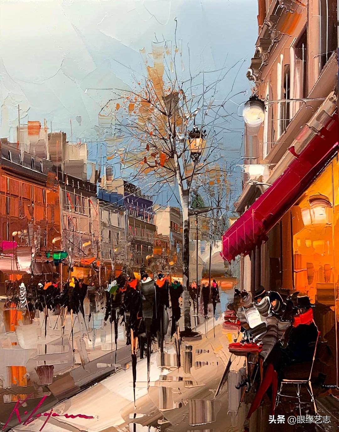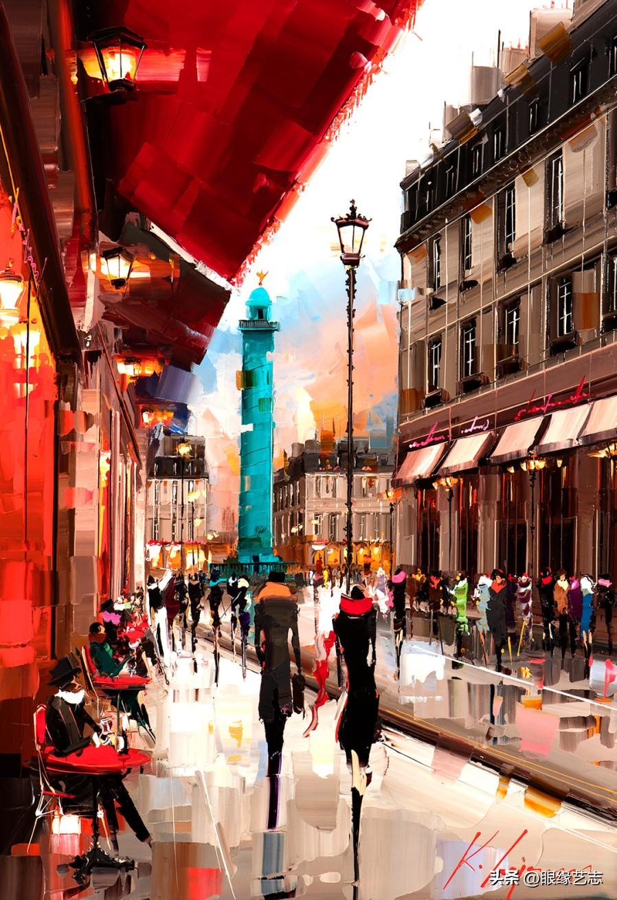 在蒙特利尔弥漫着淡蓝色烟雾的工作室中,作为当下全球最多产和最杰出的调色刀画家之一,加拿大艺术家卡尔·加朱姆习惯于吐着烟圈,在他的城市景观中画下一双双纤细的长腿,并为她们穿上一款款时尚的衣裙。正如法国作家维克多·雨果所说的那样,烟草正在将他的思想转化为梦想。