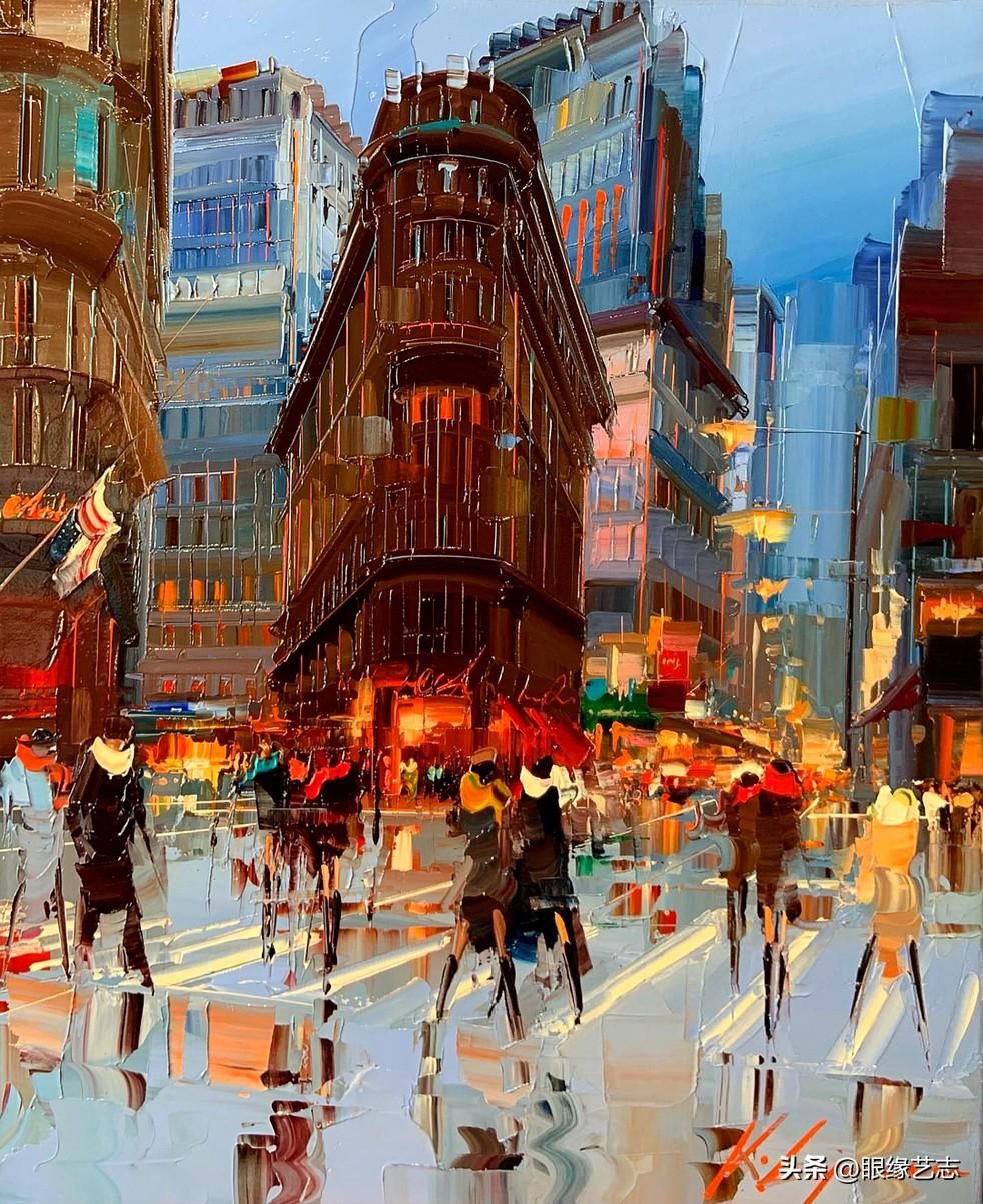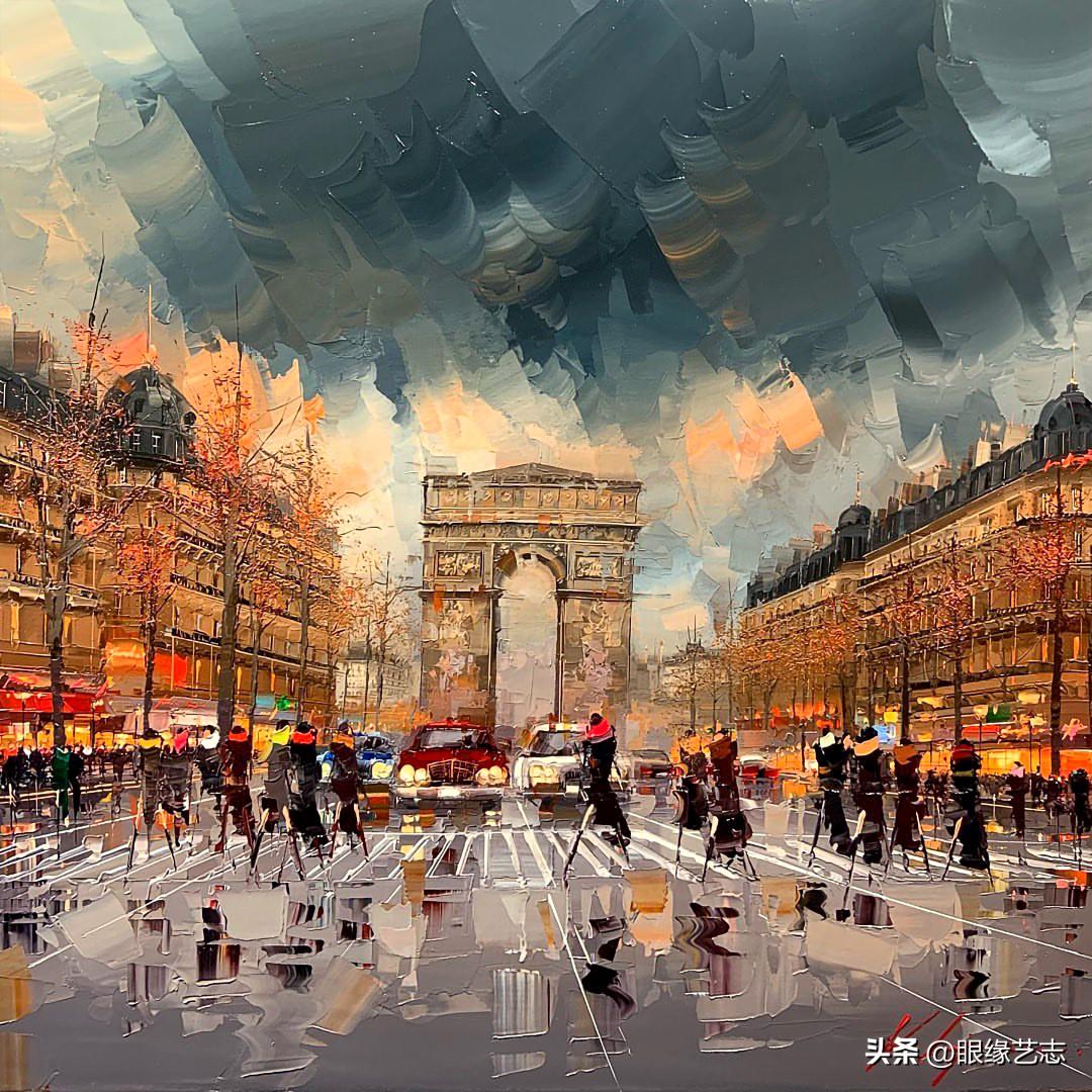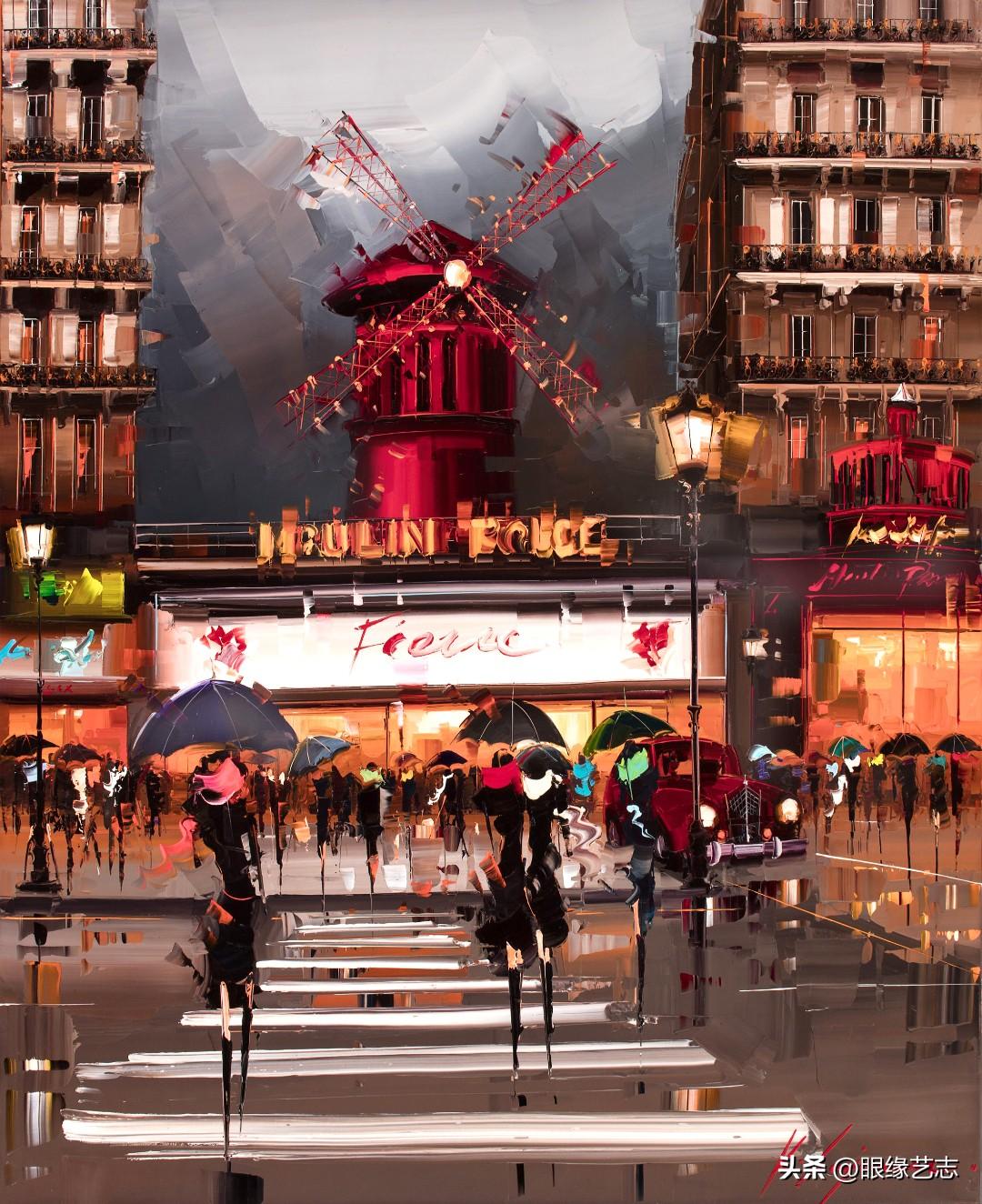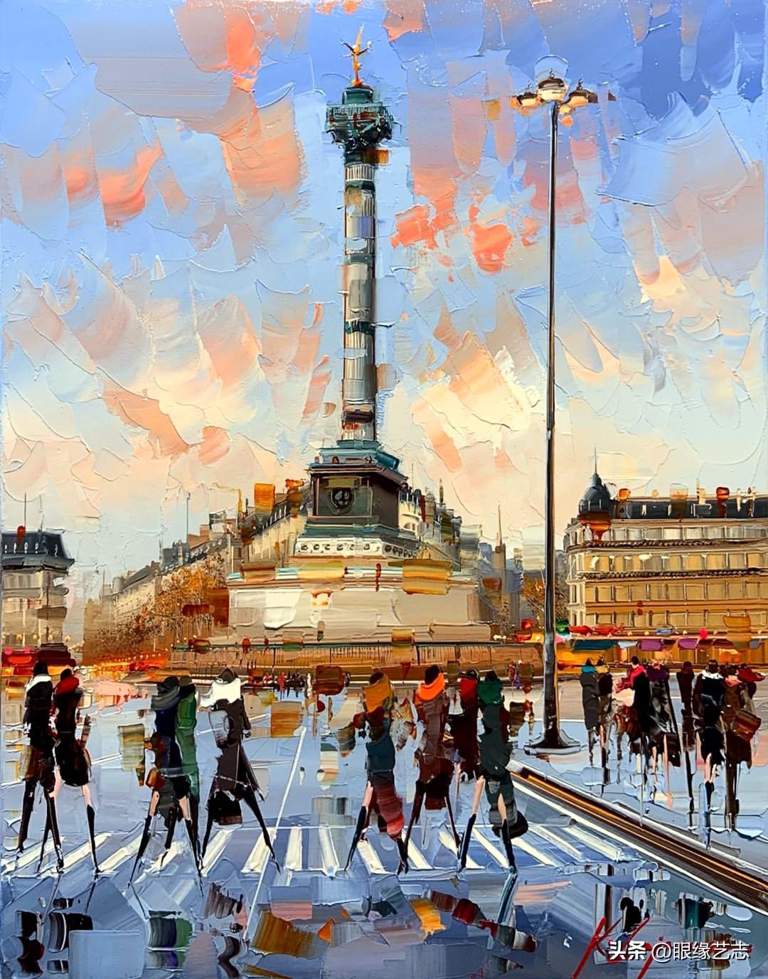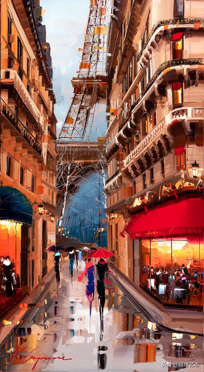 在蒙特利尔弥漫着淡蓝色烟雾的工作室中,作为当下全球最多产和最杰出的调色刀画家之一,加拿大艺术家卡尔·加朱姆习惯于吐着烟圈,在他的城市景观中画下一双双纤细的长腿,并为她们穿上一款款时尚的衣裙。正如法国作家维克多·雨果所说的那样,烟草正在将他的思想转化为梦想。