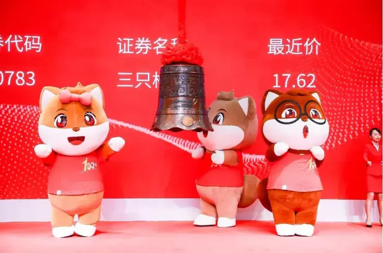 上市这天,敲钟的不是章燎原自己,更不是合伙人、高管,而是交给了三个松鼠人偶。