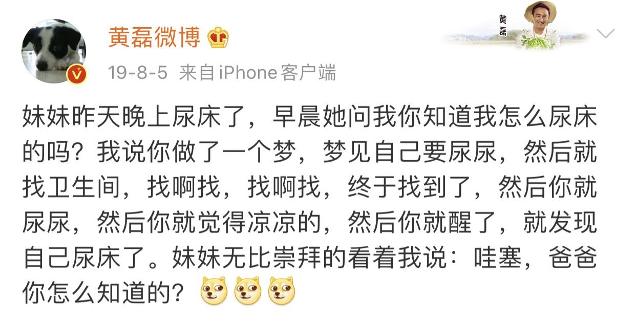 亲子关系良好的家庭,最根本的就是沟通无障碍。之前黄磊的小女儿尿床,但是在眼里这并不是一个羞耻的问题,也并不是一个不能和家长沟通的问题。她会询问黄磊知道她是怎么尿床的?