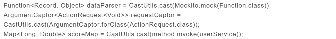 注意:CastUtils.cast方法本质是——先转换为Object类型,再强制转换对应类型,本身不会对类型进行校验。所以,CastUtils.cast方法好用,但是不要乱用,否则就是大坑(只有执行时才能发现问题)。