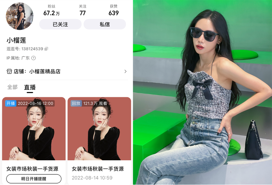 与陈龙、小鱼第一次见面时,榴莲只听到陈龙说,“以后去档口直播,那里有卖不完的货”。她就点头合作了,货源正是她最渴望的。