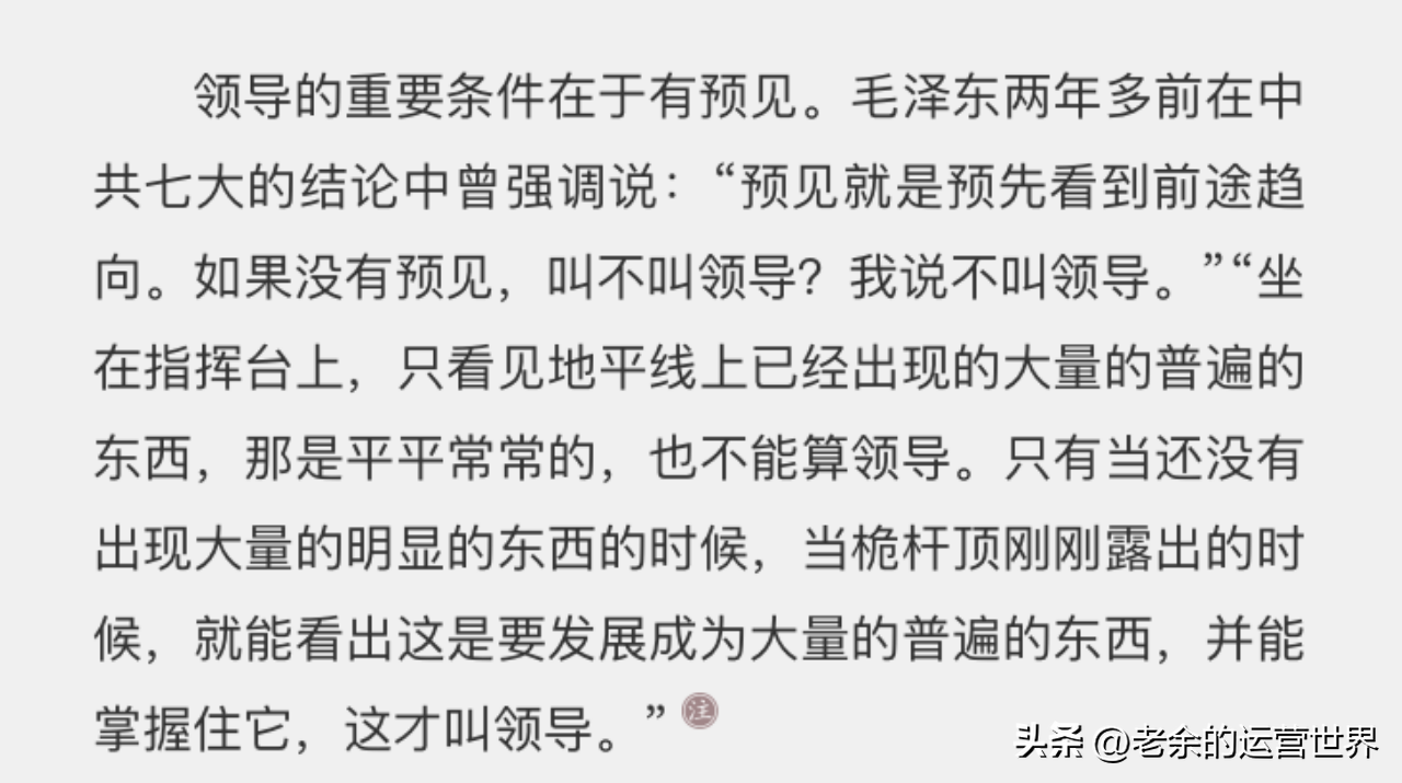 主席从无到有建立一个新中国,就如同今天的创业者一样,从无到有建立一个组织。他老人家把这个公司做到“上市”的过程,无疑对今天的创业者有莫大的启示——这是“学主席系列”的任务。