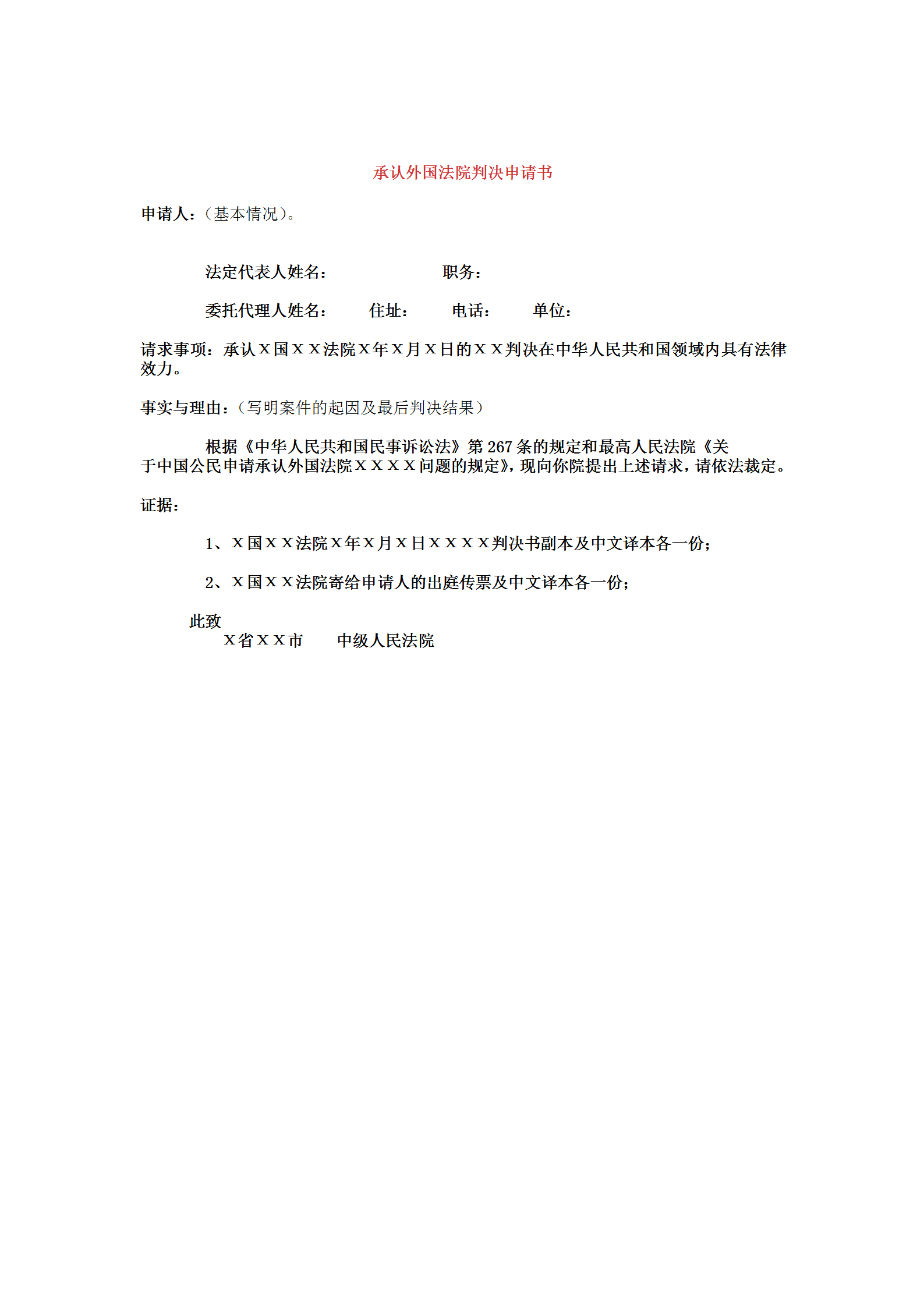 和国民事诉讼法》有关规定,特向你院申请予以执行。