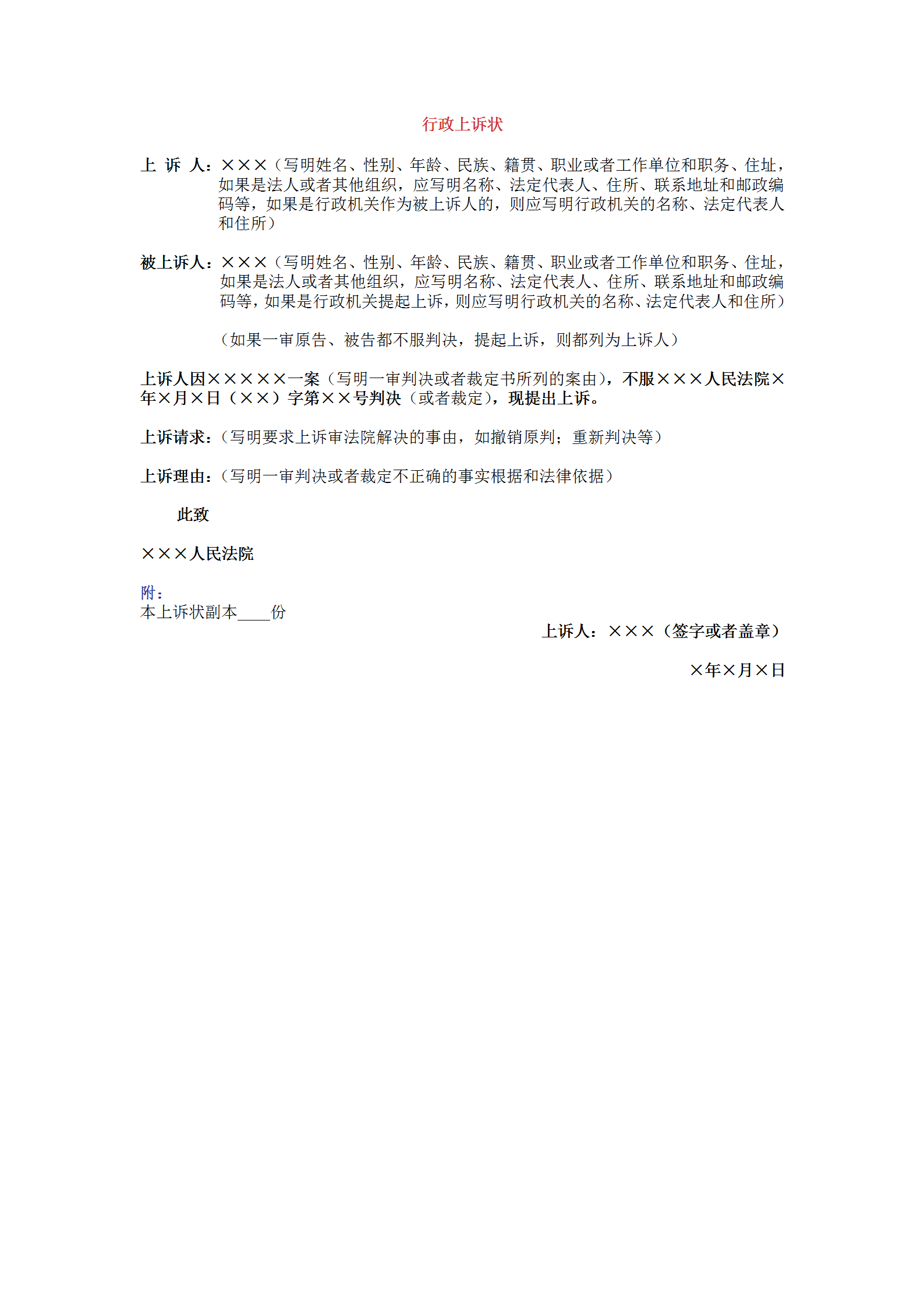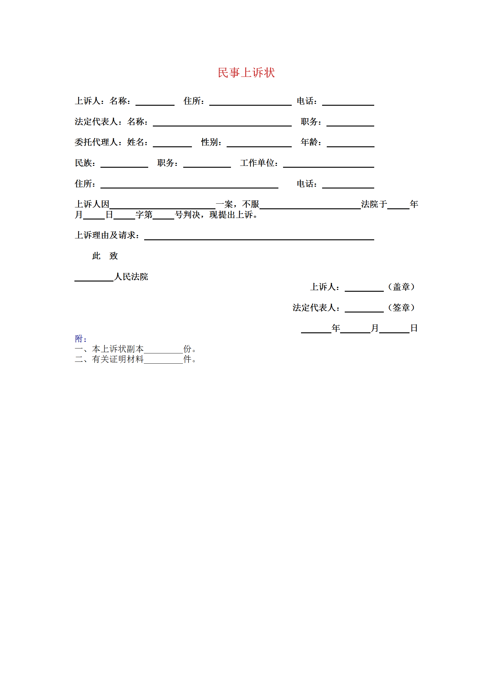 上 诉 人:×××(写明姓名、性别、年龄、民族、籍贯、职业或者工作单位和职务、住址,如果是法人或者其他组织,应写明名称、法定代表人、住所、联系地址和邮政编码等,如果是行政机关作为被上诉人的,则应写明行政机关的名称、法定代表人和住所)