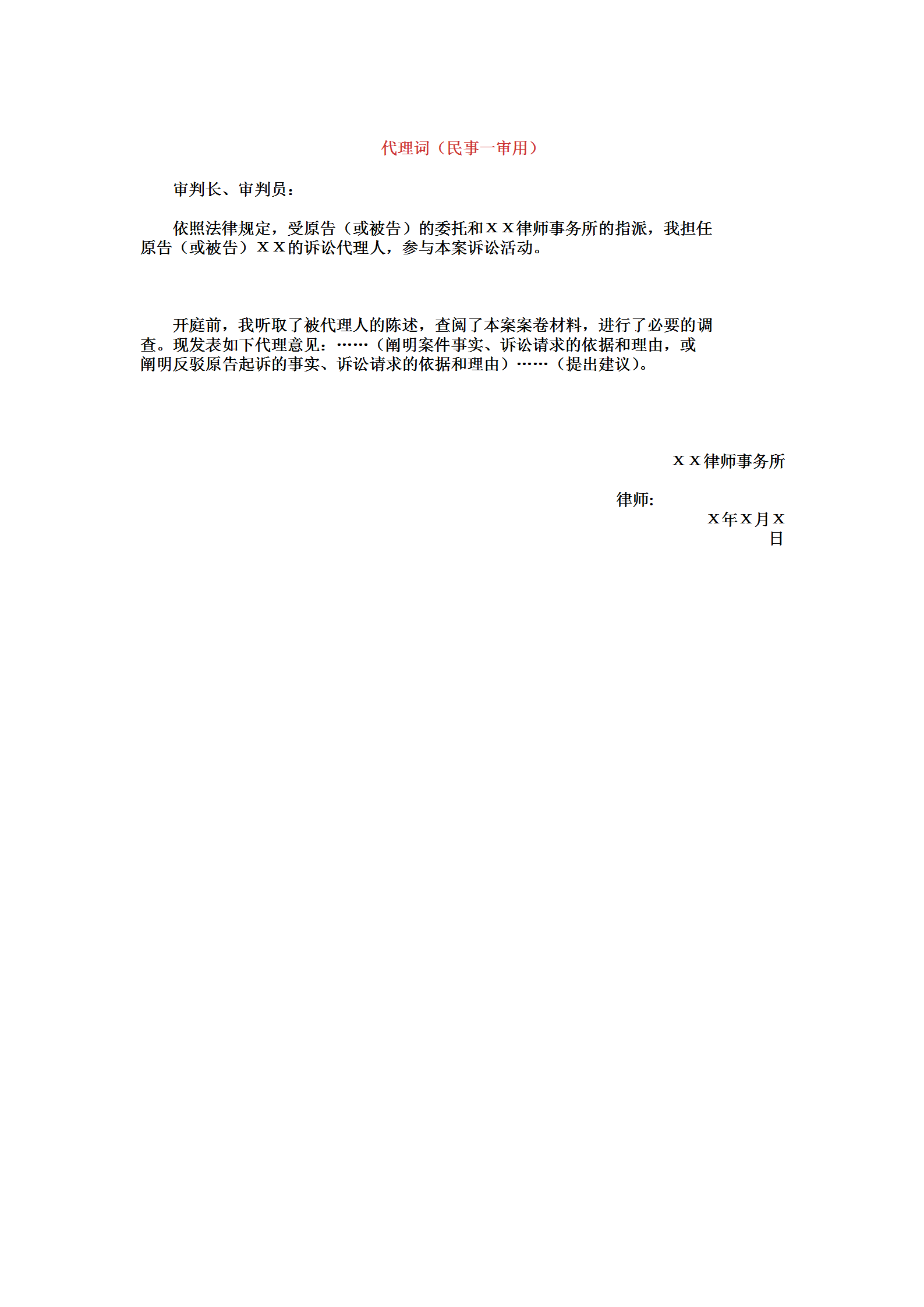 依照法律规定,受原告(或被告)的委托和ХХ律师事务所的指派,我担任