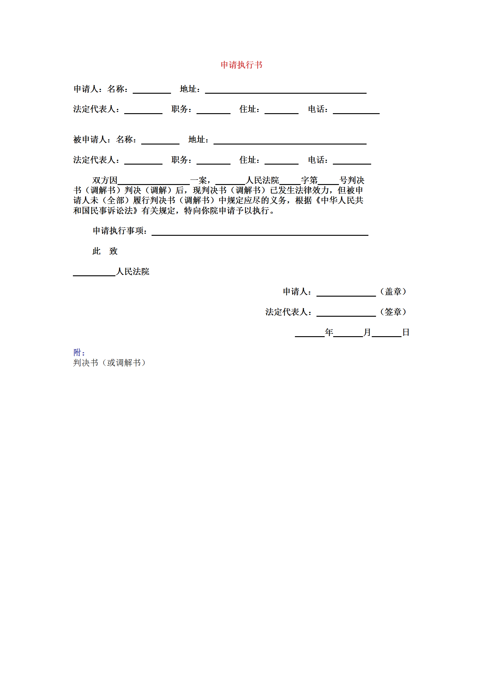 请人未(全部)履行判决书(调解书)中规定应尽的义务,根据《中华人民共