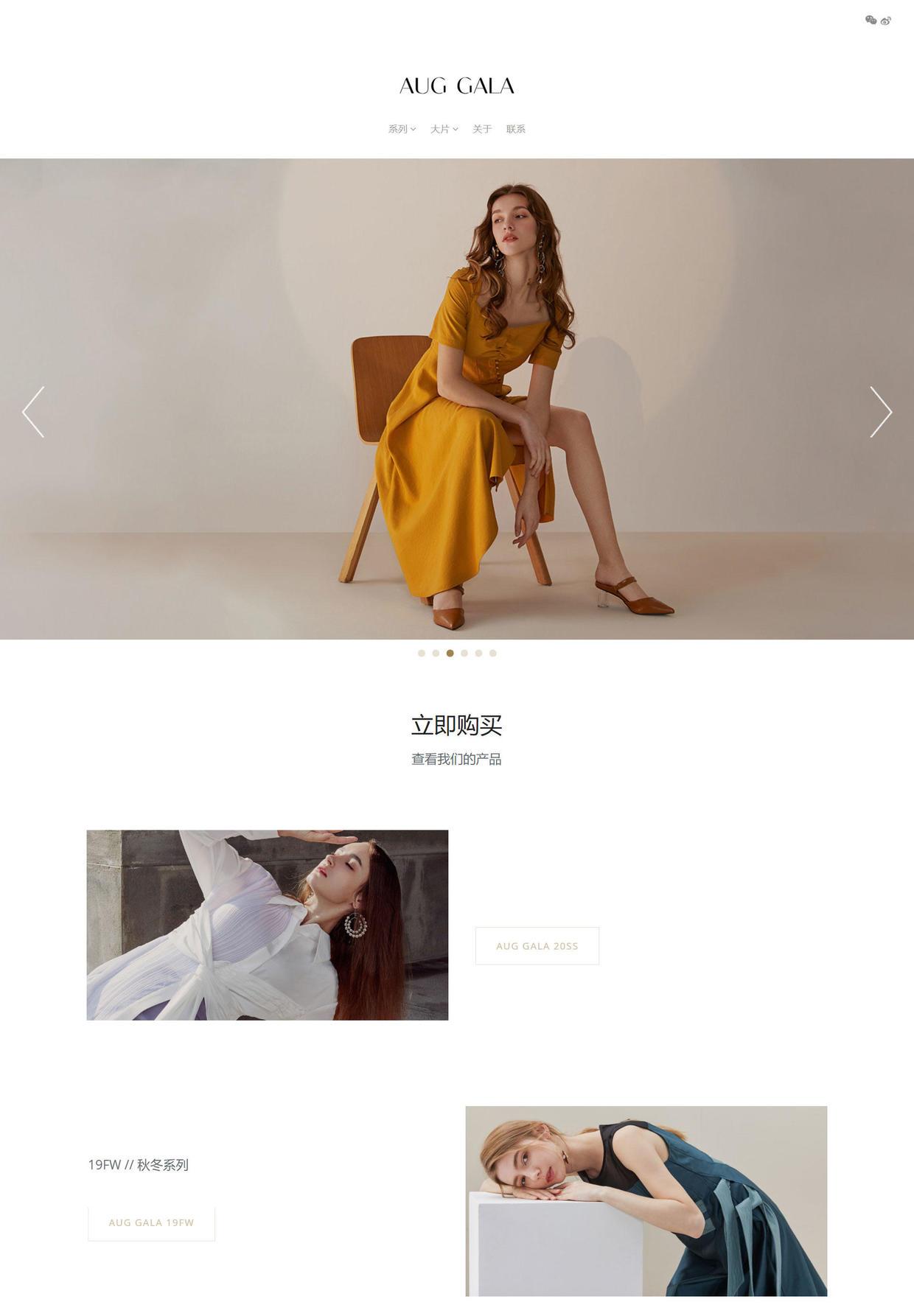 网站的整体风格要符合品牌调性,比如下图这个服装网站,就是简洁高大上的风格,图文并茂,排列整齐,浏览起来很舒服,让人对服装商品也能相应产生一种信任感,并且加深了品牌印象。