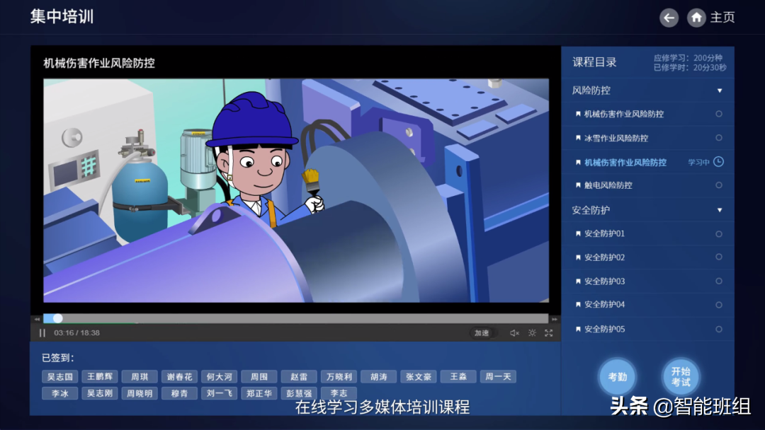 安全日活动、民主管理会、班务会、政治学习等活动在线签到,多媒体课程在线学习、安全知识问答,丰富活动形式,过程以视频、照片方式记录,未参加成员随时补学。